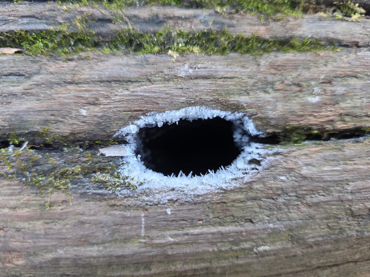 Every year, I see ice forming around holes in the steps near the creek. I always wonder what conditions make this phenomenon happen, but suspect I will never know the answer. And that’s OK. When I was younger, taking biology and anthropology classes, I thought I needed to know everything. Not so much anymore. I just appreciate the beauty around me.